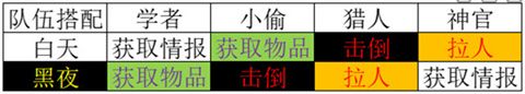 例如剑士白天放倒人的能力,和猎人有些冲突(一代就是这样),但二代加入了夜晚获取情报,能力与神官冲突了。也就是说,单单按照地图指令来说,本次组队方式,有唯一解。