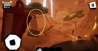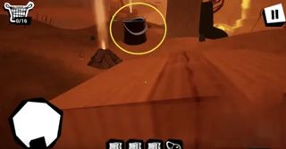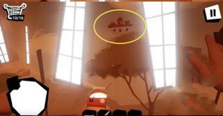 第三个玩偶在如图的桶里。利用旁边类似火山的喷气孔飞起来进去。出来需要点击右上角的暂停 - -> 我被卡住了 --> 然后选择飞回起点位置。