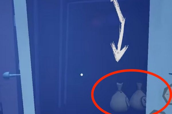 第一个玩偶在门口左手边的黄色桶上面。跳上边上的石头,然后就可以再跳上桶上面。