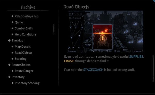 暗黑地牢2的压力值系统与关系系统合并。人物压力达到10点时,在战斗中有概率崩溃或坚定。崩溃的英雄会与其他英雄关系降低,损失大量生命值;坚定的英雄则与其他英雄关系增加,恢复大量生命值且压力值清零。除战斗中,路途中也会随机增减压力,路线选择会影响压力值,按英雄想法选择路线可降低压力。