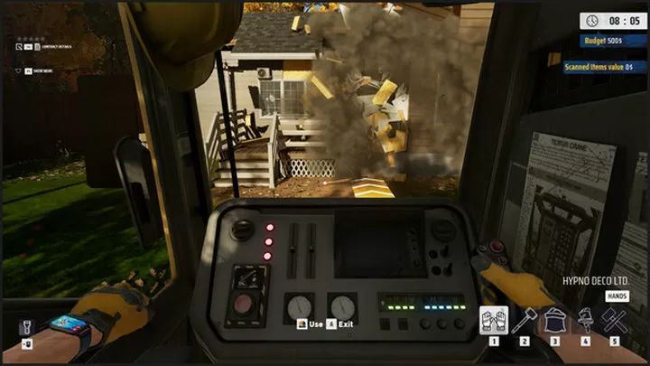 玩家可选择精细拆解(如逐块拆除墙壁、家具)或暴力破坏(使用大锤、破坏球等工具直接摧毁建筑),并回收有价值的建材(如金属、铜缆)和珍贵物品转售盈利。
