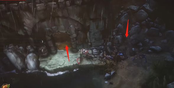13、在爬到最上面之后,朝着右侧小道深入,可以发现一个看守小屋的怪。