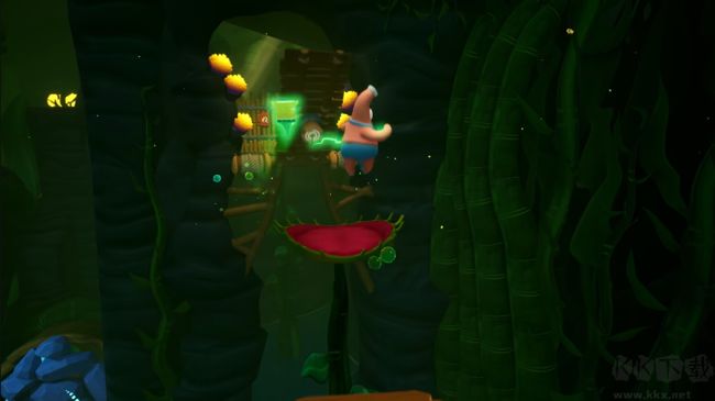 3、派大星展现出惊人的力量与智慧,运用抓钩在复杂地形中穿梭,通过挖掘发现隐藏通道