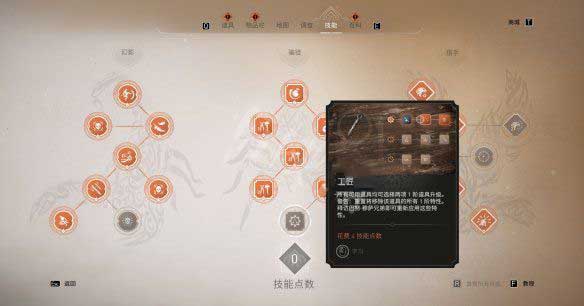 技能分为三类,幻影、骗徒和猎手,幻影系技能会强化巴辛姆的刺杀及战斗手段,骗徒系技能会强化道具的使用,猎手系技能会提高鹰眼视觉以及巴辛姆的信息获取能力。