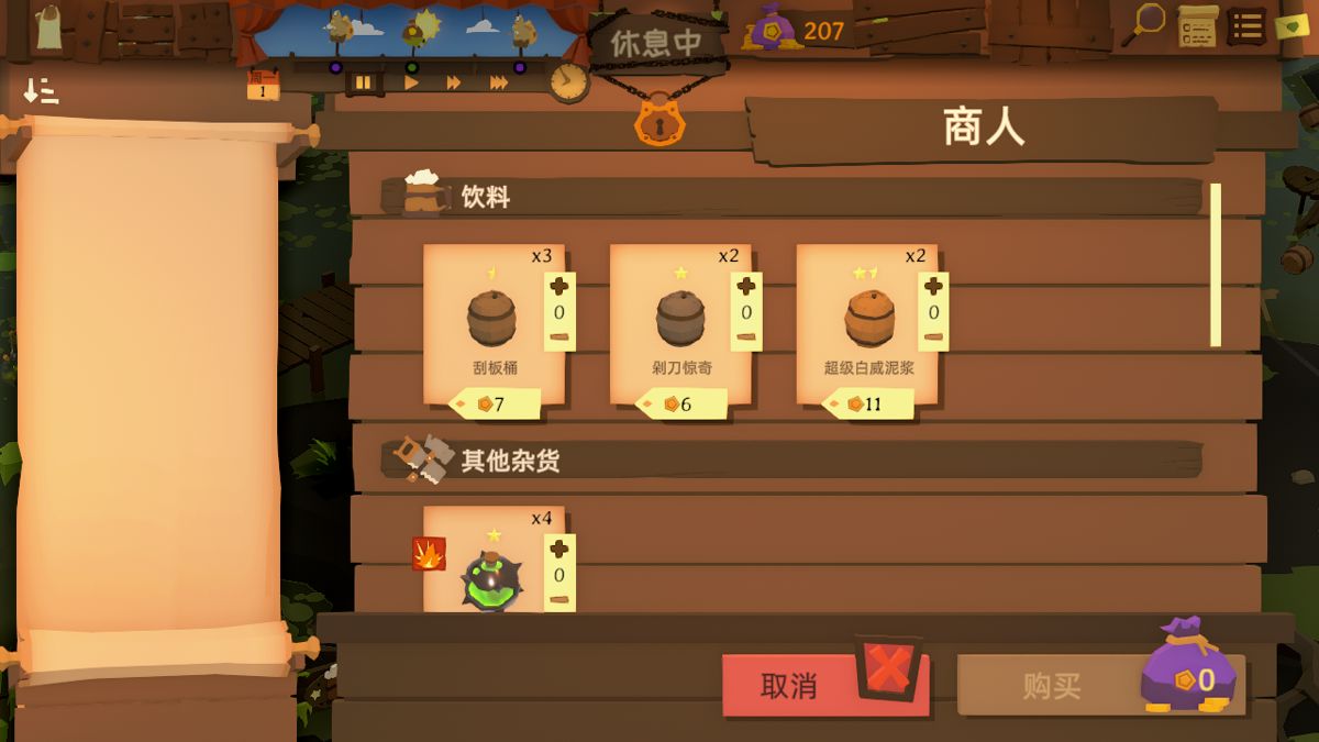 8、随后可以在商人处购买更多的酒水,保证开始的酒水供应。