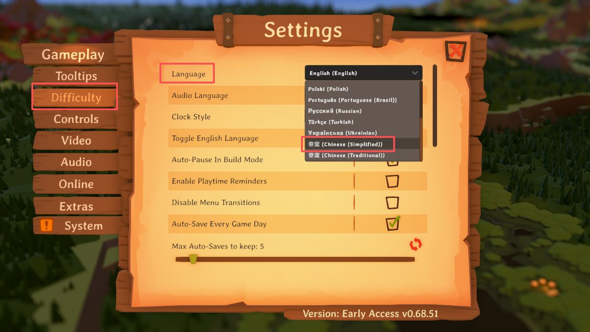 2、随后点击“Difficult”,选择“Language”,再选择“中文”即可。
