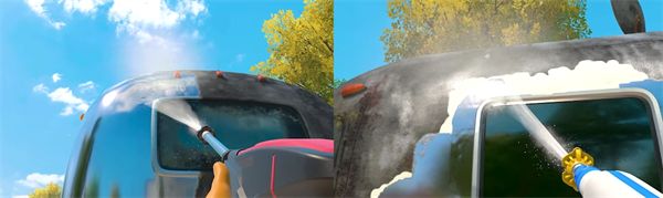 延续前作核心玩法,有动态水物理效果与污渍瓦解动画,看着污渍在高压水流冲击下逐渐消失,带来强烈的解压感和成就感。