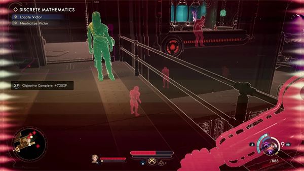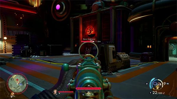 N 射线扫描仪是你可以获取的新装备之一,戴上之后你可以透 视墙壁,并能探测环境内的隐身敌人或隐藏关键物品,但此举会消耗一种类似于法力值的能量。这个道具相当适合用来搭配潜行玩法,我正在思考如何让这种搭配得以贯穿游戏始终。