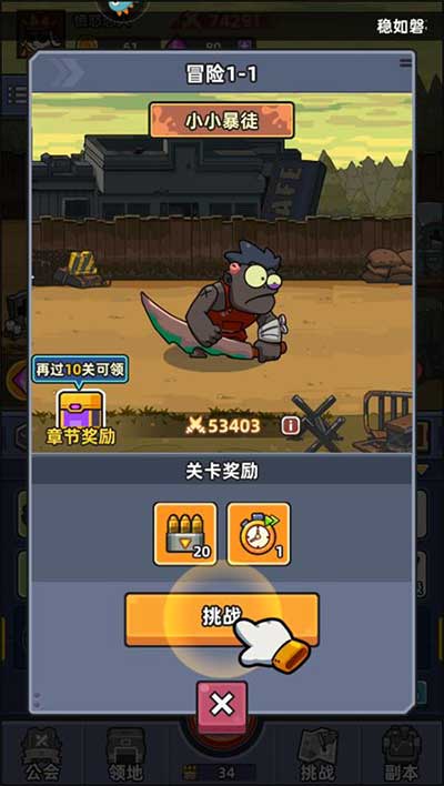 4、游戏过程还会出现冒险关卡,我们还可以挑战更加强大的敌人,可以赢得更加豪华的奖励。