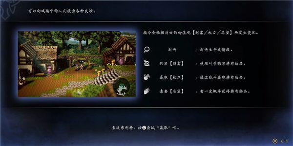 《歧路旅人0》作为系列前传,带你重返奥鲁斯特拉大陆的起源。故事始于故乡“Wishvale”的毁灭,玩家踏上追寻神秘“神明之戒”的复仇与家园重建之旅。本作革新引入深度角色定制系统,玩家可自由塑造主角外貌、声音乃至喜好;同时家园重建成为核心玩法,需招募旅伴、规划小镇布局并解锁建筑功能。战斗延续经典回合制“破防/增幅”机制,队伍规模扩展至8人,新增自由搭配的“技能模块”。游戏特色包括影响结局的“复仇”或“复兴”双线叙事、30余名可招募角色的独立剧情与互动、以及角色技能与城镇景观的多维自定义。