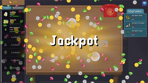 3、持续刮卡以累积财富,一旦触发“Jackpot”头奖,即可获得巨额资金,实现飞跃式发展。