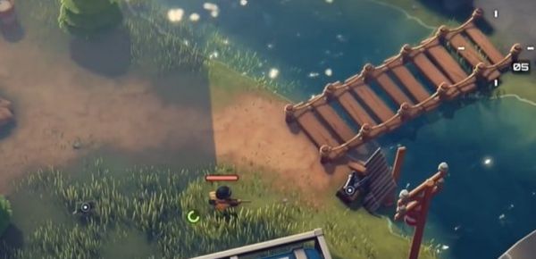 4、往右边走,过小木桥后,玩家需要向下走。