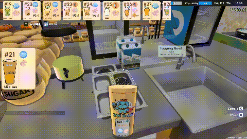 从萃茶、摇杯到加料封膜,每个环节需精准操作,茶温过高或冰块比例错误会影响口感评分,系统实时反馈饮品完成度与顾客满意度。