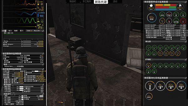 玩家的角色拥有逼真的身体表现和各种功能,如代谢、消化和排泄等。玩家需要注意角色的状态,包括血糖、水分和肌肉质量等。