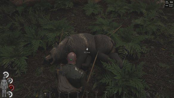 关于打猎,没枪 械的时候尽量不要去找熊的麻烦,你会被kuma一巴掌扇死的,而且也不要过度相信你手上的冷兵器,爆头也没用的x,潜行点满可以摸过去弄死
