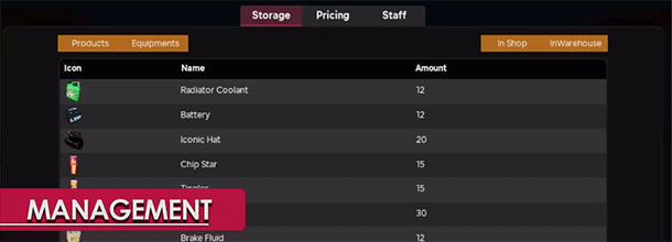 订 购产品/设备以及您经营汽车旅馆所需的一切物品。设定商店产品和房间租赁的价格。给你的员工分配任务并确保你支付他们的工资。