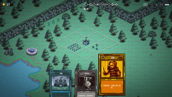 需平衡经济、军事、科技三大资源。经济用于建造与升级,军事强化部队战力,科技解锁新能力。每10年需选择政策(如侧重经济或军事),决策直接影响后期实力。