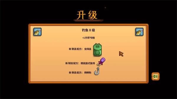 第三天:这一天一定是个雨天,我们可以不用浇水,直接去矿前的湖钓鱼,然后能在12:00左右到达3级,去鱼店,把钓到的鱼卖了,买鱼竿,然后来碗鳟鱼汤,去河流钓鲶鱼,钓到几条看脸,主要是升下钓鱼等级,小赚一下,最后能到达4级 。