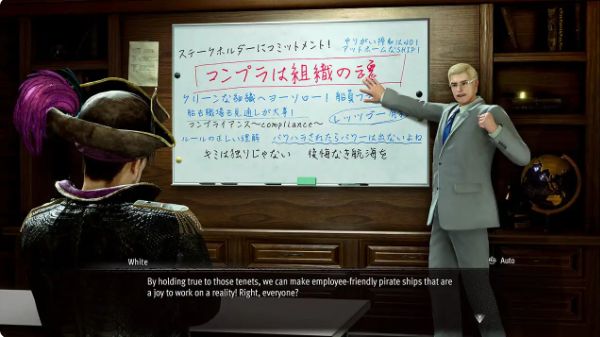 真岛遇见了一位因过时且粗暴的作风而被同乘船员们抛弃的船长。当两人正要讨论是哪里出了问题时,一个自称经营咨询公司的男人出现在了他们的面前。于是,真岛们开始接受海盗行业的合规进修,学习如何成为一个好船长。努力解决海盗行业特有的案例问题,成为适应新时代的合格船长!