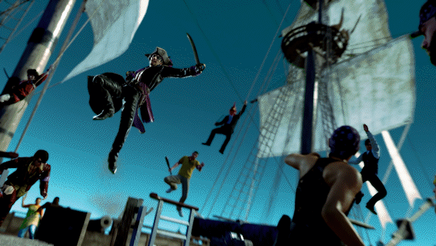 玩家可操控真岛吾朗使用“狂犬”及“海盗”两种战斗风格。“狂犬”风格融合格斗动作与短刀攻击,可打出快速连招;“海盗”风格则能挥舞弯刀,还可穿插使用弯刀回旋镖、充能枪和钩索等海盗道具,并且消耗“狂暴量表”可召唤“诅咒之神”来扭转战局。