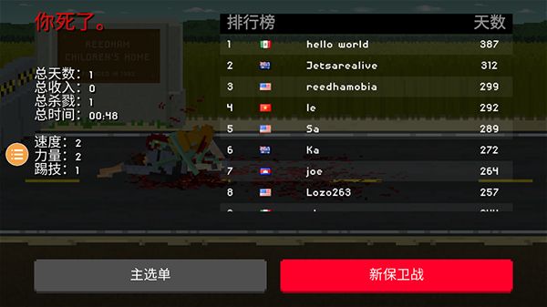 4、如果玩家不及时消灭僵尸,就会被其所消灭,而且在游戏排行榜中将没有玩家的名字