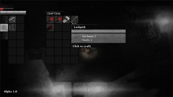 在房间西南角拾获一条弹簧和一块碎布,然后打开物品栏,会发现可以制作一个撬锁针,然后打开 房间北面地板门。