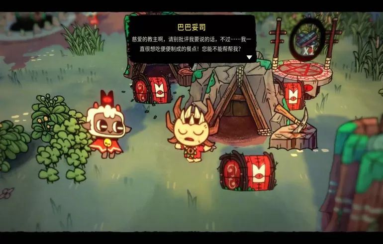 游戏以黑暗幽默为基调,玩家扮演一只神圣的羊领导信徒团队,