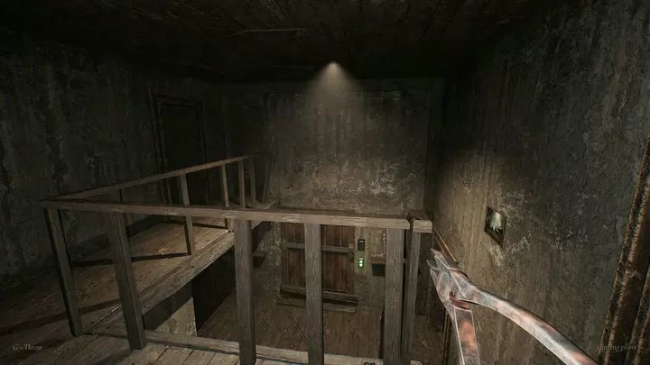 7、【弩】用武器箱钥匙开武器箱获的,使用的麻醉针当做弹药,发射出去后命中奶奶可以使奶奶静止两分钟,当然,麻醉剂用完之后还可以二次利用,我们可以射下一楼楼梯那里的灯,里面有一把钥匙。