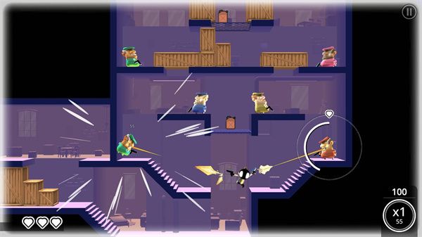 在关卡设计上基于游戏本身的物理引擎玩法之外,也额外的添加了各种“顺应性道具”,比如汽油桶、木箱,射击远程的汽油桶不仅可以帮助消灭敌人,也能在特定的场景下炸毁地图模型开路。其丝滑的战斗timing,流畅的动作引擎,超多的内容设计,都会让你在接触这款游戏的短短几分钟内就爱上它。此外,游戏中还融入了些许解谜要素。游戏内有诸多秘宝供玩家收集,许多秘宝的设置都让人望而却步,想要获取秘宝还需多加研究当前的关卡设置。而每一个秘宝都可以解禁主角的属性能力:比如全武器解锁、无限专注时间、子弹射速加快、玩家移动速度提升等。这些属性能够在原本快节奏的基础上再次更进速度,让玩家的游戏体验更加刺激,战斗更加酣畅淋漓。