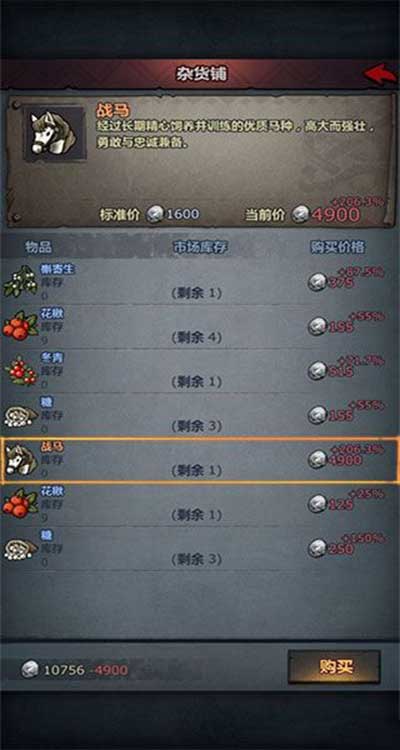特别需要注意的是,这两种马在价格上有很大的差异,战马的市场标准价格为1600*银币,普通的马的市场标准价格为300*银币。友情提示,市场标准价格仅供参考,角色可根据市场浮动的价格考虑是否需要购买。