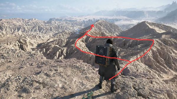 2、查看远处的目的地,然后沿着面前的山脊行走,下图的两条路线都可以。沿路扫描会发现有些东西捡。