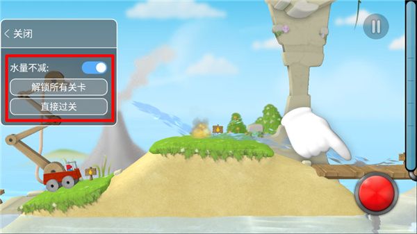 8、这里先要把大冰块那里的货源灭了,然后车子前进,提高喷头,喷水,让冰块冲走,接着灭火,木桥掉下来,过关。