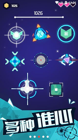 1、简约几何风格的图形打造,灵敏的滑屏触感,手指滑到哪你的准心就会跟到哪。