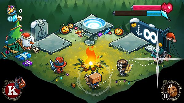 上百件不同的装备,每件装备都有独特外形,打造你专属的萌萌小剑士吧!不管是武器、衣服还是帽子,外形都有着鲜明的万圣节风格,并且都有特定的属性加成。在迷宫里闯关打怪会掉落装备,三个部位可以任意搭配;另外还可以花费少量宝石,开启宝箱碰碰运气,也许能获得稀有装备瞬间秒杀BOSS呢