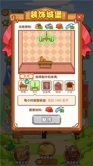 2、随着关卡的突破程度,您可以升级称号,解锁更高级的外观,同时也能获取到更多用于建造城堡的材料,升级城堡,产出更多的金币当路费,俗称自己垫钱。