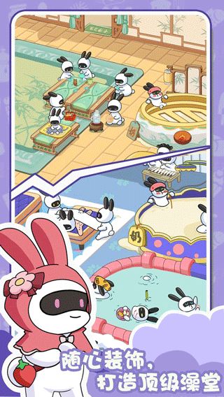 另外,兔克的餐厅最新版还有许多随机事件会改变兔克们的命运,还高度还原兔克们打工的日常,同时还可以拓展高级生产线,招募可爱的兔子员工,建造各种风格的澡堂,拓建经营自己的兔克餐厅。