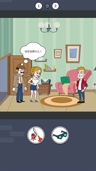 4、第一关找出男子不正常的地方,需要用刀道具1,选择吸尘器。