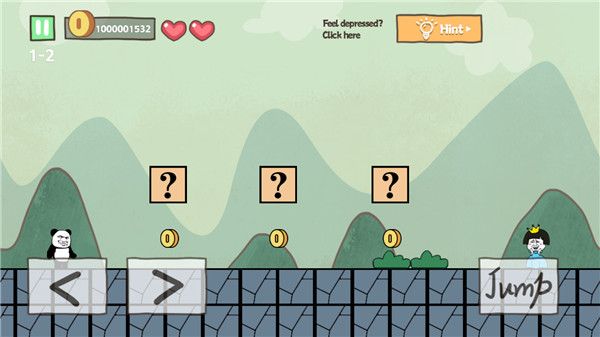 2、撞击问号方块可以获得金币,前两个没事,第三个下方会出现陷阱,可以直接跳跃到方块上过去。
