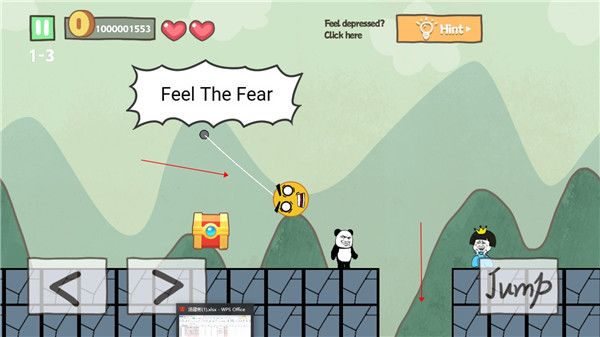 4、这关不要管前面的钥匙直接走,这里跟第一关有点类似,也有一个隐形的方块勾引出来就行,不要从云上跳,云也是个陷阱。