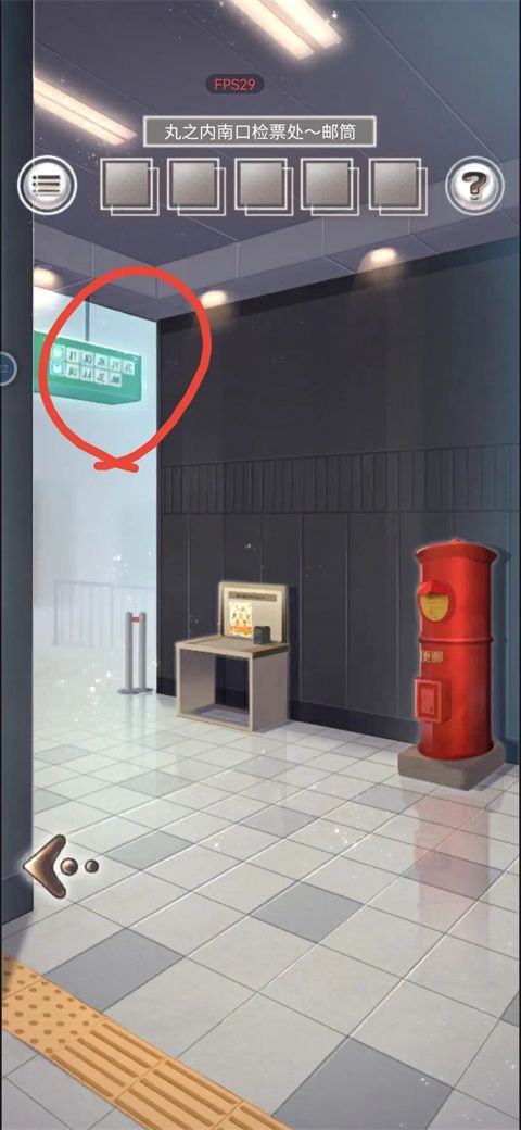 2、站外右转,点击上方牌子,得知对应字母KEY,返回失物招领处输入