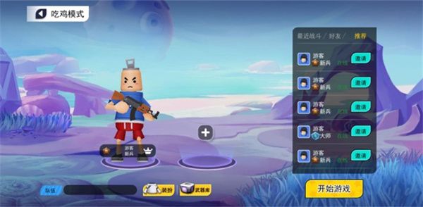 1、下载安装好拉罐大作战最新版本,运行游戏,选择吃鸡模式,游戏中还有其他的游戏模式,开始匹配;
