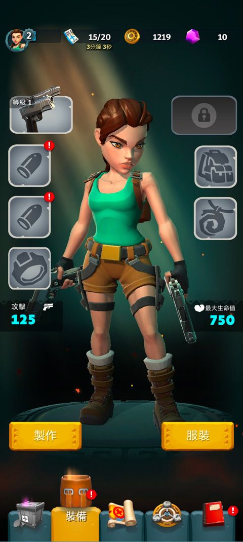 5、以升级劳拉的服装和武器,提高你的基本攻击和生命值。