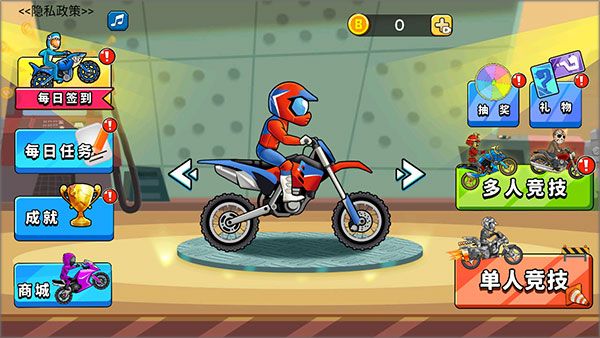 1、下载安装好登山极限摩托狂飙手游,进入游戏选择单人竞技或者多人竞技。