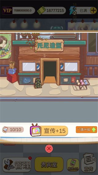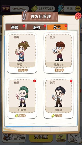 2、玩家可以从装修、招募、宣传等不同角度打造自己的理发店。