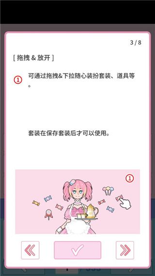 1、可通过拖拽&下拉随心装扮套装、道具等,套装在保存套装后孑可以使用。