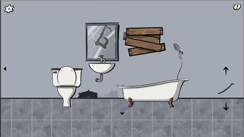 点击浴室左下角的洞,先用撬棍把后面的墙撬开。然后依次放上金属罐,酒,打火机和子弹。然后把烧着的金属罐推进洞里。