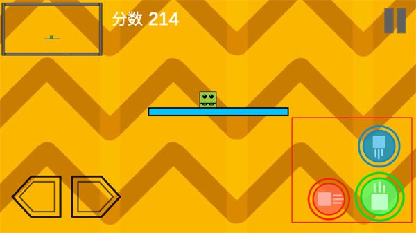 5、玩家可以点击蓝色按钮可以进行跳跃,红色按钮可以快速移动,绿色按钮可以快速下落;