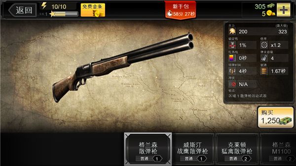 1、游戏开始前,首先你要拥有一把武器,你可以在武器商店中购买到步枪、冲锋枪、猎 枪、手枪四种类型的枪支。四种枪支各有各的特色,游戏一开始,我们要用的是步枪。