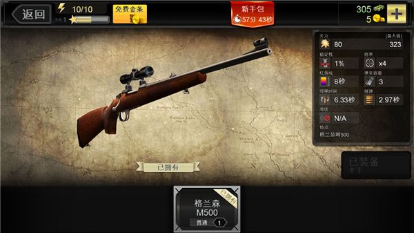 4、瞄准,枪支稳定性不够时,瞄准镜会移动,当移动到心脏位置时,要迅速开枪。