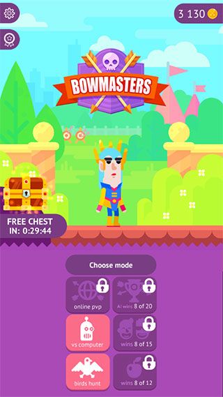 弓箭手们中文版是一款益智类投掷射击游戏,以传统的抛物线射击玩法为基础,不但拥有线上对战、锦标赛、与电脑对战、与好友对战、猎鸟和射苹果六大模式可供您自主选择,还加入了大量的新颖的人物、技能及皮肤造型系统,从而让原本显得的单调游戏更具魅力色彩,各式各样的主题投掷对决,有效的力度和角度把控,辅以血淋淋的勇士较量,带给你更加突出、独特的抛物线投掷游戏全新体验,而玩家则需通过调整抛射的角度和力度来完美通关该游戏。